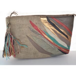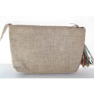 Burlap & Leather Patch Tassel Purse